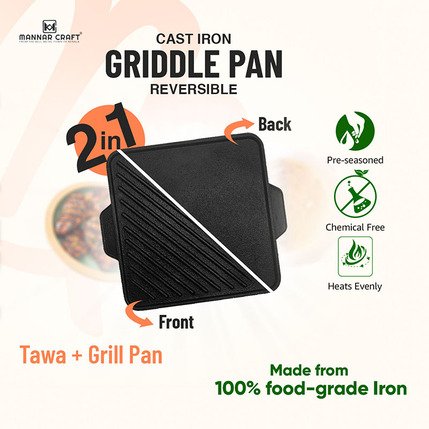 Looking for the best-cast iron griddle pan? Look no further than Mannar Craft! Our cast iron cookware is of the highest quality and will make your cooking experience better than ever. This cast iron skillet is perfect for grilling, frying and so much more. With this reversible cast iron grill pan, you’ll be able to cook evenly as its high-quality construction ensures even heat distribution and the durable design will last for years. The pan is also great for searing and browning. Cast iron cooking has its benefits and with the perfect cast iron pan, you will be cooking like a pro in no time!
