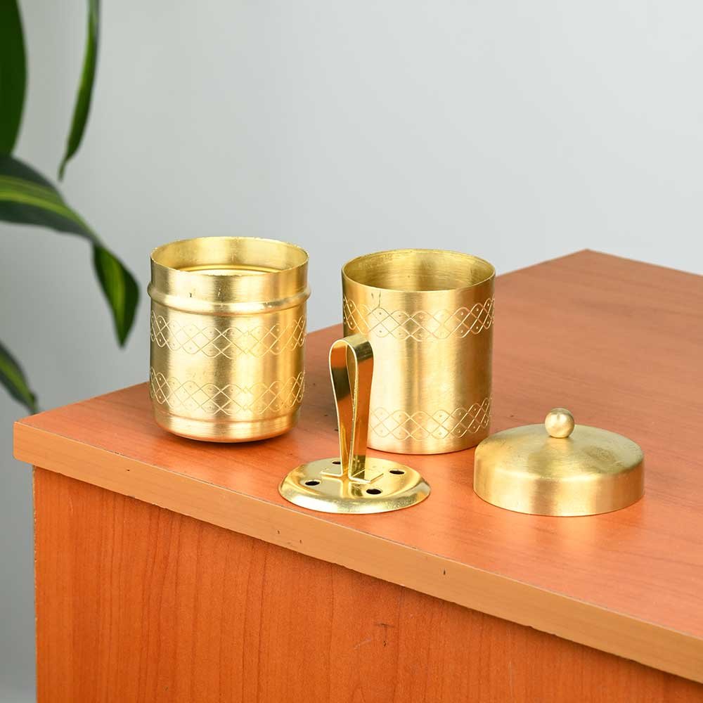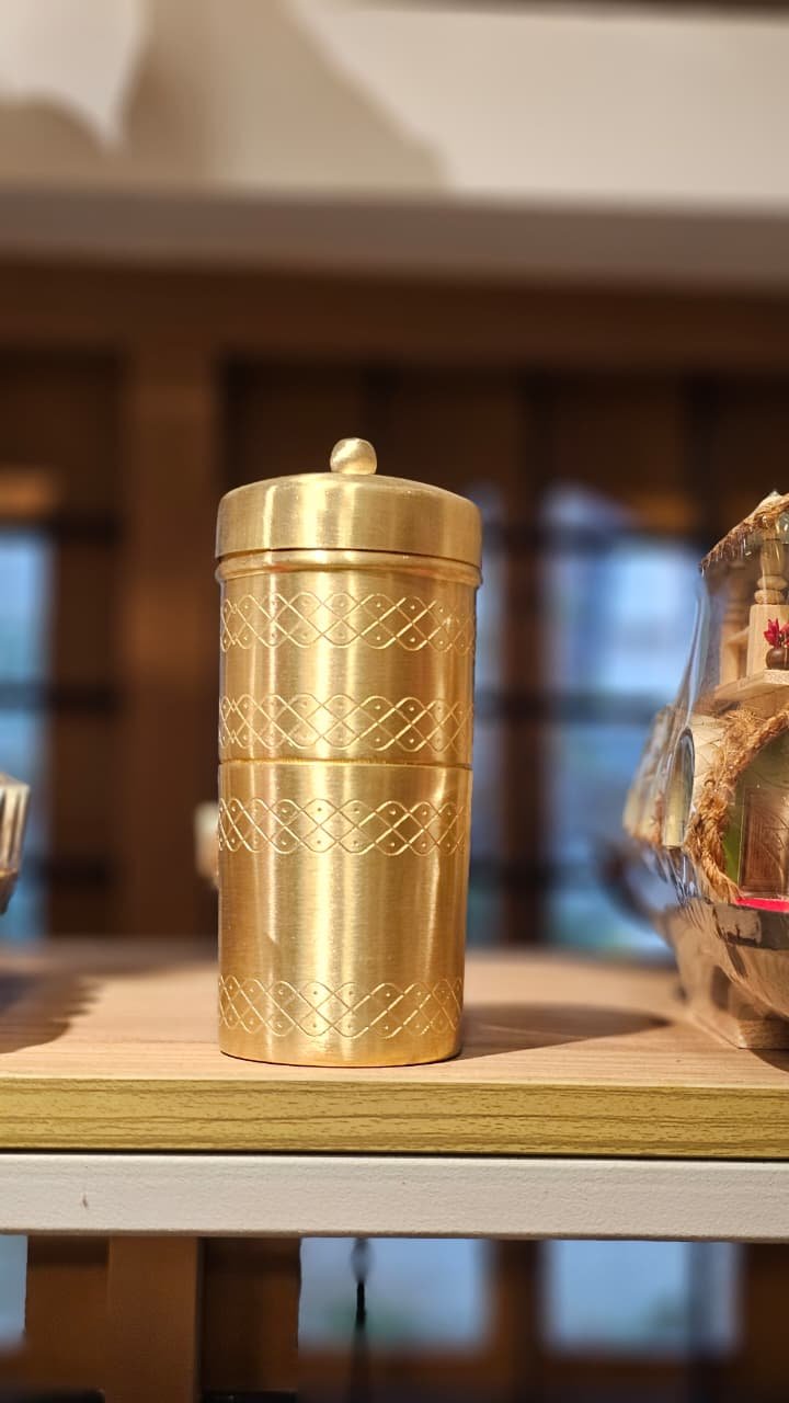 Brew authentic South Indian filter coffee with this 2 cup kolam design coffee filter. Crafted in brass with a matte finish, it combines tradition and elegance perfect for daily use, gifting, or adding heritage charm to your kitchen.