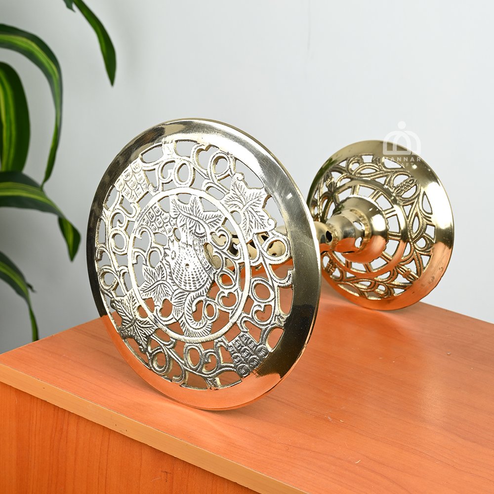 Whether you're placing your favorite deity idol, lighting a brass lamp, or arranging festive décor, this traditional brass chowki creates a graceful focal point. Its antique finish evokes the charm of heirloom pieces often found in heritage homes across Kerala and beyond, making it both a spiritual and decorative essential.
