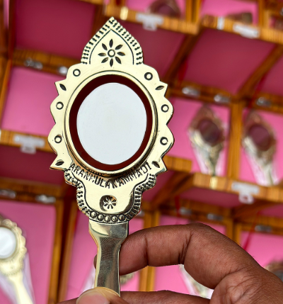 Handcrafted by skilled artisans of Aranmula, this 1.75-inch traditional metal mirror reflects Kerala’s rich heritage. Made using ancient techniques, the Aranmula Kannadi is a symbol of prosperity and elegance — ideal for décor, pooja, and gifting.
