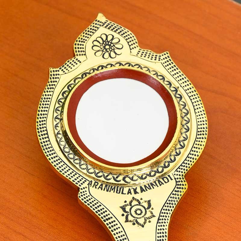 Discover the timeless elegance of the Aranmula Kannadi Valkannadi Traditional Metal Mirror. Handcrafted by skilled artisans in Kerala, this 2.25-inch mirror is not just a reflection tool but a piece of cultural heritage. Made from a unique metal alloy, this traditional mirror is known for its unparalleled reflective quality and exquisite craftsmanship. Perfect for adding a touch of tradition to your home decor or as a thoughtful gift for loved ones, the Aranmula Kannadi is a true masterpiece of Indian artistry.