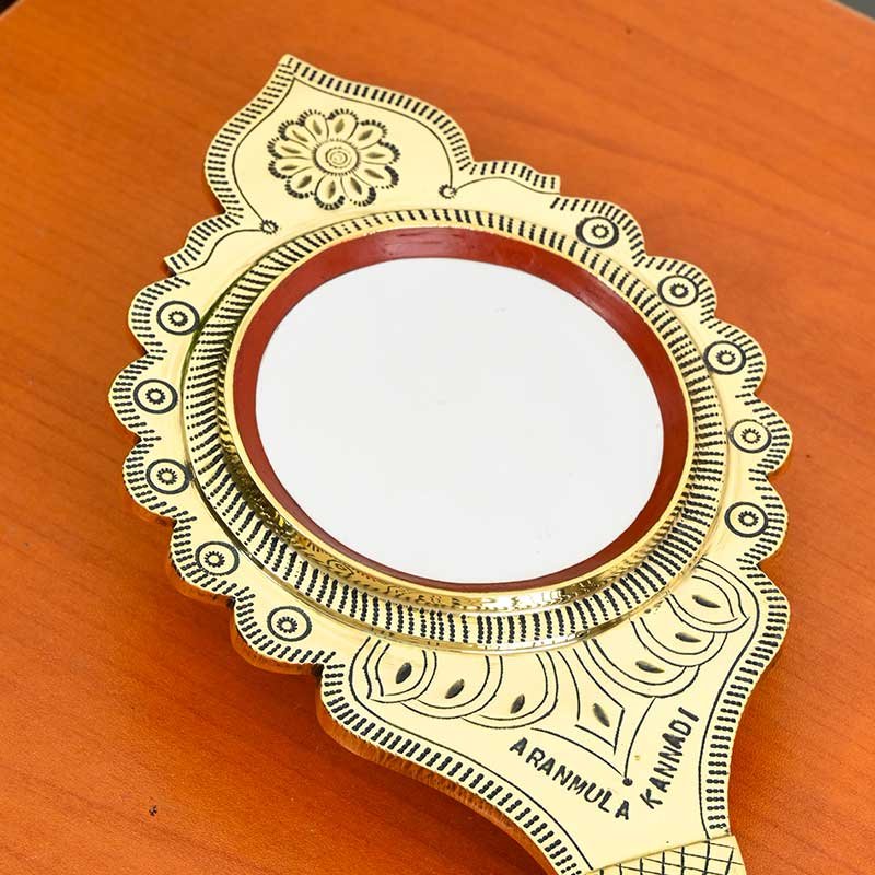 Authentic 3.5-inch Aranmula Vaalkannadi handcrafted by skilled artisans of Kerala. This traditional metal mirror, made using ancient techniques, is a symbol of prosperity and heritage — perfect for home décor, pooja use, and gifting.