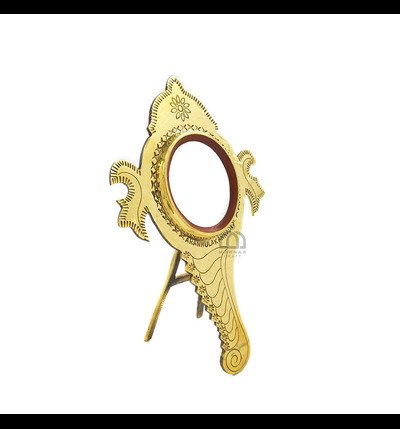 Experience the timeless charm of the Authentic Aranmula Kannadi Mirror featuring a classic round shank design and sturdy back stand. Handcrafted by skilled artisans of Aranmula, this traditional metal mirror symbolizes prosperity and cultural heritage .