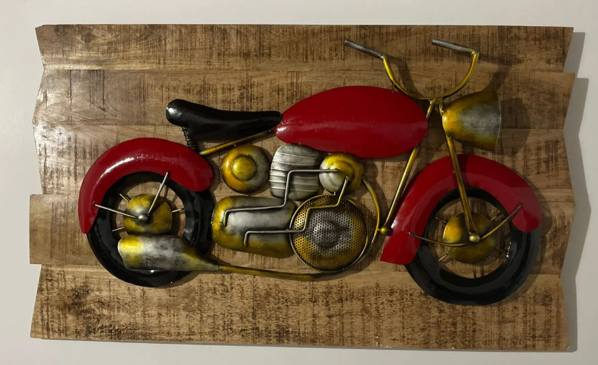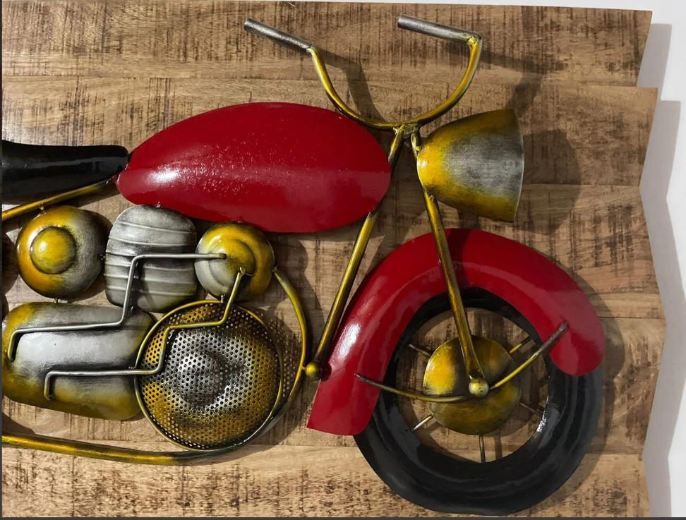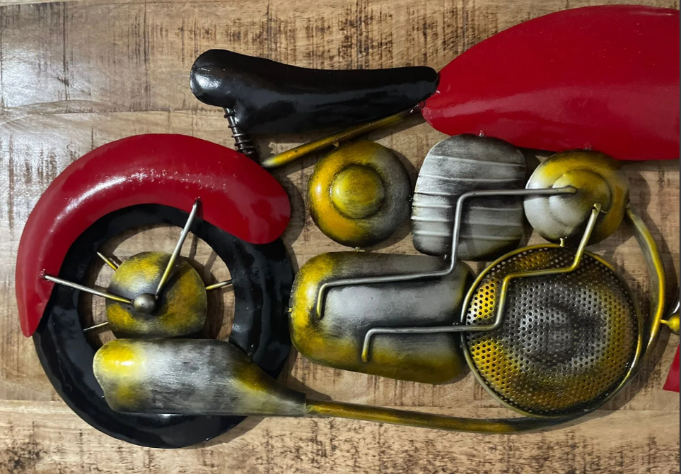 Bike Wall Hanging Metal Art is a trendy and artistic wall décor piece crafted from durable metal with a vintage finish. Featuring a stylish motorcycle design, it adds a bold and modern touch to living rooms, bedrooms, offices, cafés, and garages.