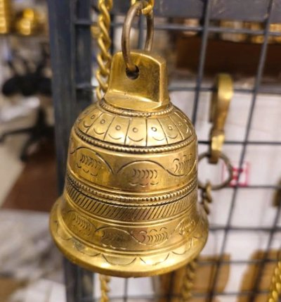 Bring spiritual harmony to your space with this 3-inch brass hanging bell with chain. Handcrafted for temples and homes, it features a clear, melodious tone and traditional design—perfect for daily pooja, wall décor, and divine gifting.