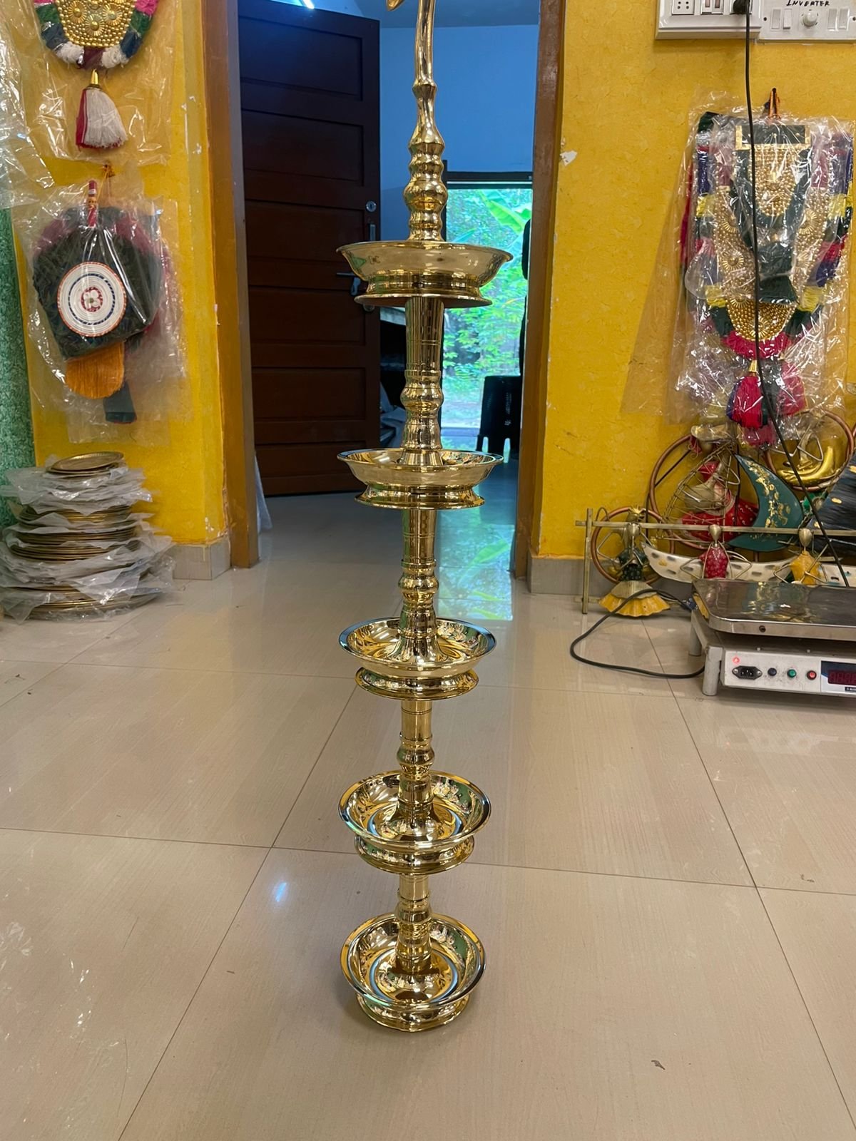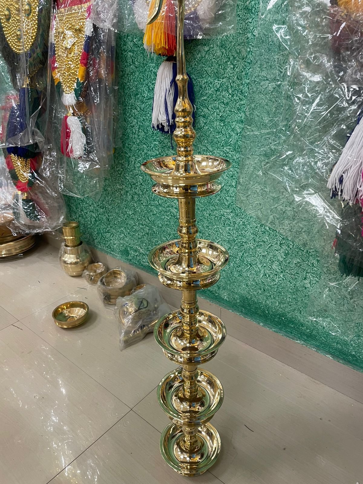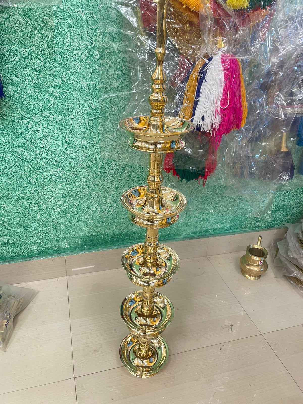 Crafted by skilled artisans, this deepasthambham features five circular tiers, each representing the gradual ascent from darkness to enlightenment. When lit, the soft golden glow creates a serene and sacred ambience—perfect for daily pooja, temple rituals, and auspicious occasions.