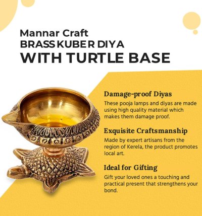Elevate your festivities with the Brass Kuber Diya featuring an intricately engraved design. Perfect for Pooja, Diwali, and Return Gifts, this exquisite piece adds a touch of elegance and spirituality to your celebrations.Crafted with precision and care, the Brass Kuber Diya boasts a unique turtle base symbolizing longevity and wisdom. It's not just a Diya; it's a symbol of tradition, culture, and devotion.