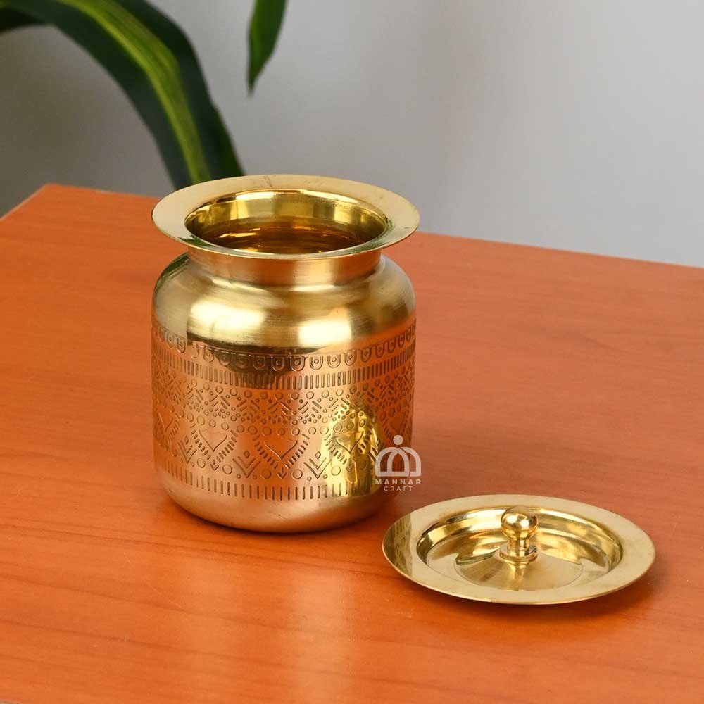 Celebrate tradition and functionality with the Mannar Craft Brass Oil Can (Barni) – Handcrafted Brass Jar with Lid. Designed by skilled artisans, this brass storage pot combines authentic craftsmanship with everyday utility.