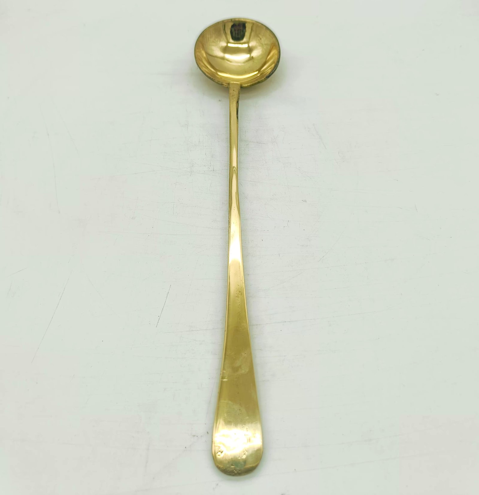 Elevate your culinary experience with the Brass Plane Ladle, a premium addition to your cookware and tableware collection. Expertly crafted from high-quality brass, this ladle is perfect for cooking, serving, and presenting dishes with elegance. The smooth gold finish exudes luxury, making it a timeless piece for your kitchen or dining table. Whether you're preparing traditional recipes or serving guests, this Kuli Karandi ensures functionality and sophistication. Its sturdy design and natural brass properties promise durability and a touch of heritage charm.