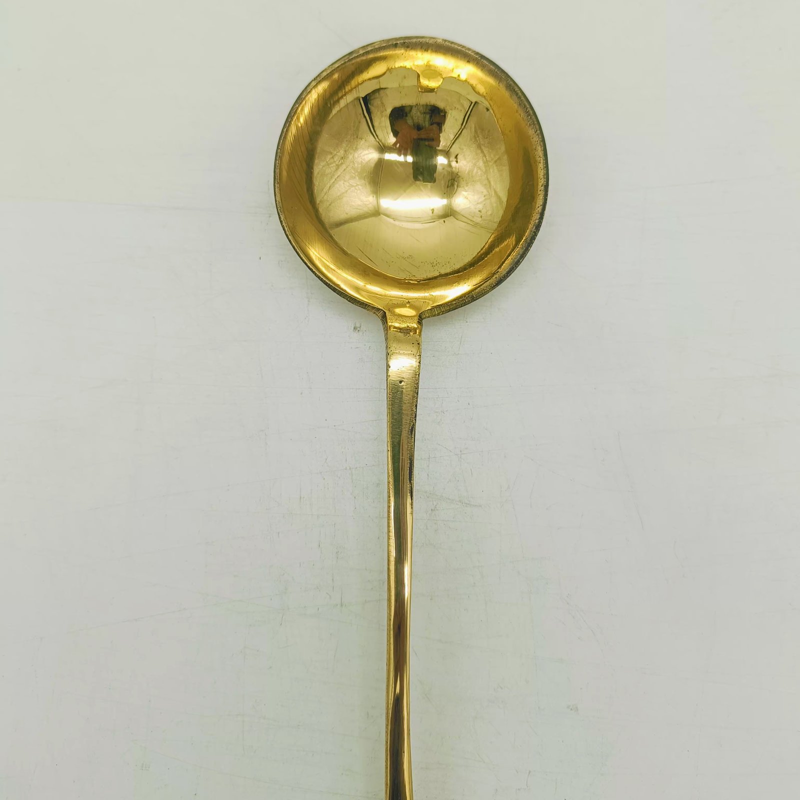 Handcrafted Brass Plain Ladle with gold finish for cooking and serving. Durable, elegant, and traditional Kuli Karandi – perfect for kitchen and tableware use.