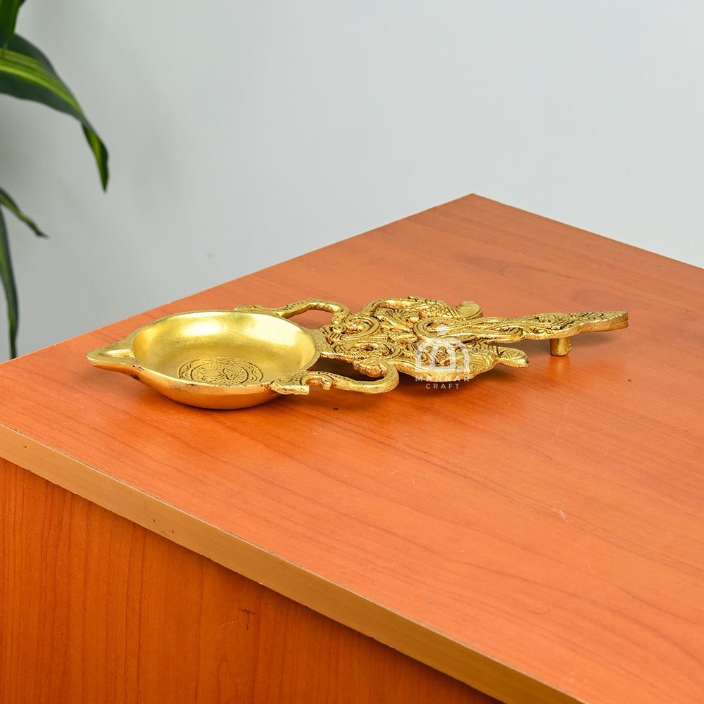 Traditional Brass Pooja Aarti Spoon with Twin Parrot Design