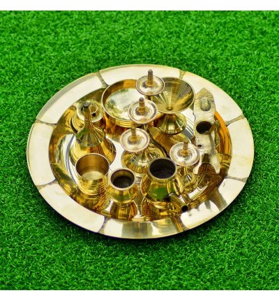 Traditional Brass Pooja Thali Set with complete puja essentials and aarti plate. Perfect for daily worship, festivals, rituals and all religious occasions.