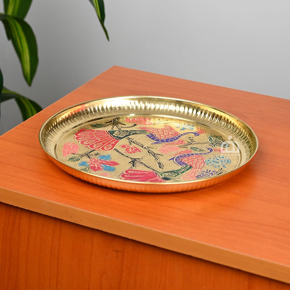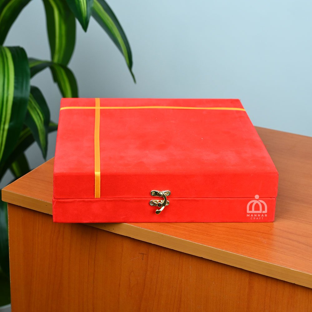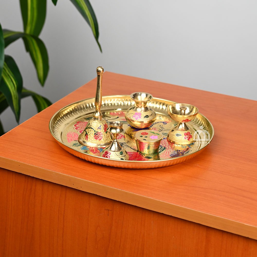 Bring elegance and tradition to your spiritual rituals with the Mannar Craft Brass Pooja Thali Set with Red Flower Design in Red Velvet Gift Box. Expertly handcrafted from pure brass, this 8-inch pooja thali features a beautiful red flower motif that symbolizes prosperity, purity, and devotion. Its polished golden surface enhances its shine, making it ideal for both daily worship and festive celebrations. The set comes in a luxurious red velvet gift box, ensuring safe storage and making it a perfect choice for auspicious gifting. Whether used for Diwali, Navratri, weddings, housewarming ceremonies, or temple rituals, this brass pooja thali adds a touch of cultural heritage and timeless beauty to every occasion. A true blend of spirituality and craftsmanship, this thali from Mannar Craft is a must-have for every devotee and a meaningful gift for loved ones.