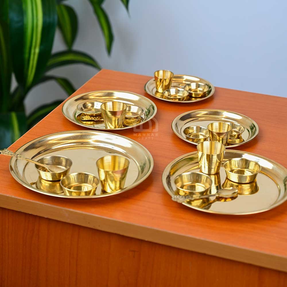 This set includes 1 Pooja thali plate, 2 bowls, 1 glass, and 1 spoon.