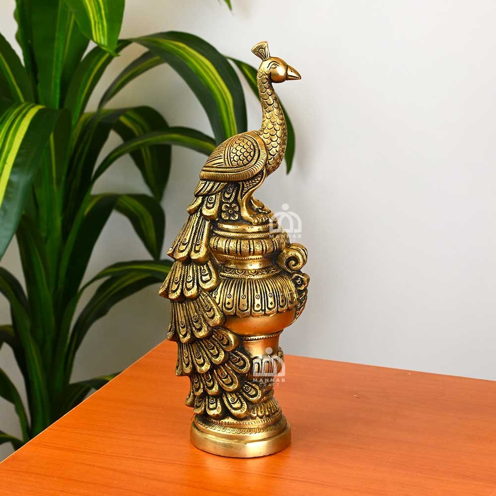Enhance your living space with the Brass Special Peacock Model 3 by Mannar Craft. This handcrafted brass peacock statue showcases intricate detailing and superior craftsmanship, making it a striking addition to any home decor or office space. Weighing 3.020 kg, this premium brass statue is durable, elegant, and exudes a luxurious charm that complements traditional and modern interiors alike.