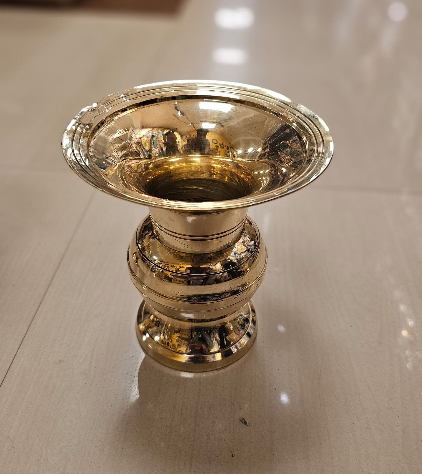 Made from high-quality solid brass, this traditional brass spittoon showcases expert craftsmanship and a smooth polished finish. Its sturdy build ensures long-lasting durability, while the classic curved design mirrors antique Indian brassware used in royal households and traditional spaces.