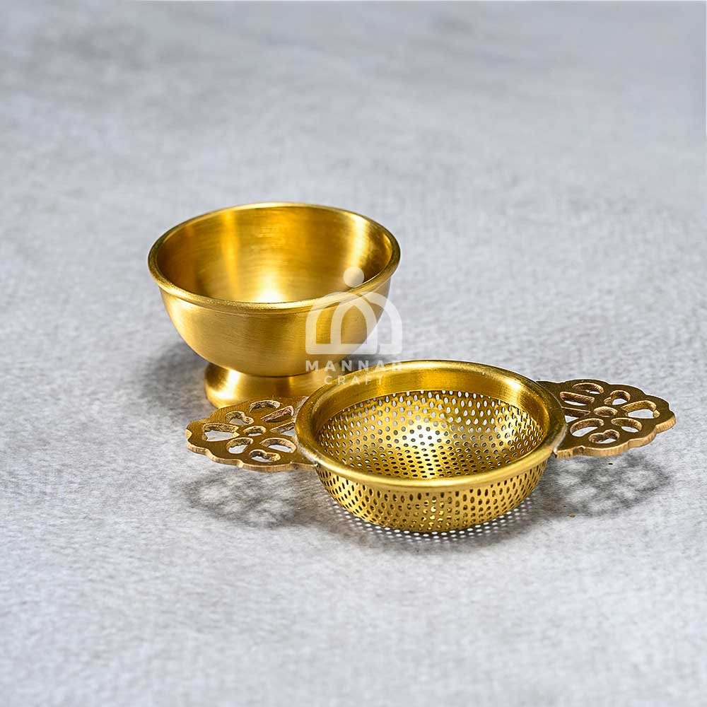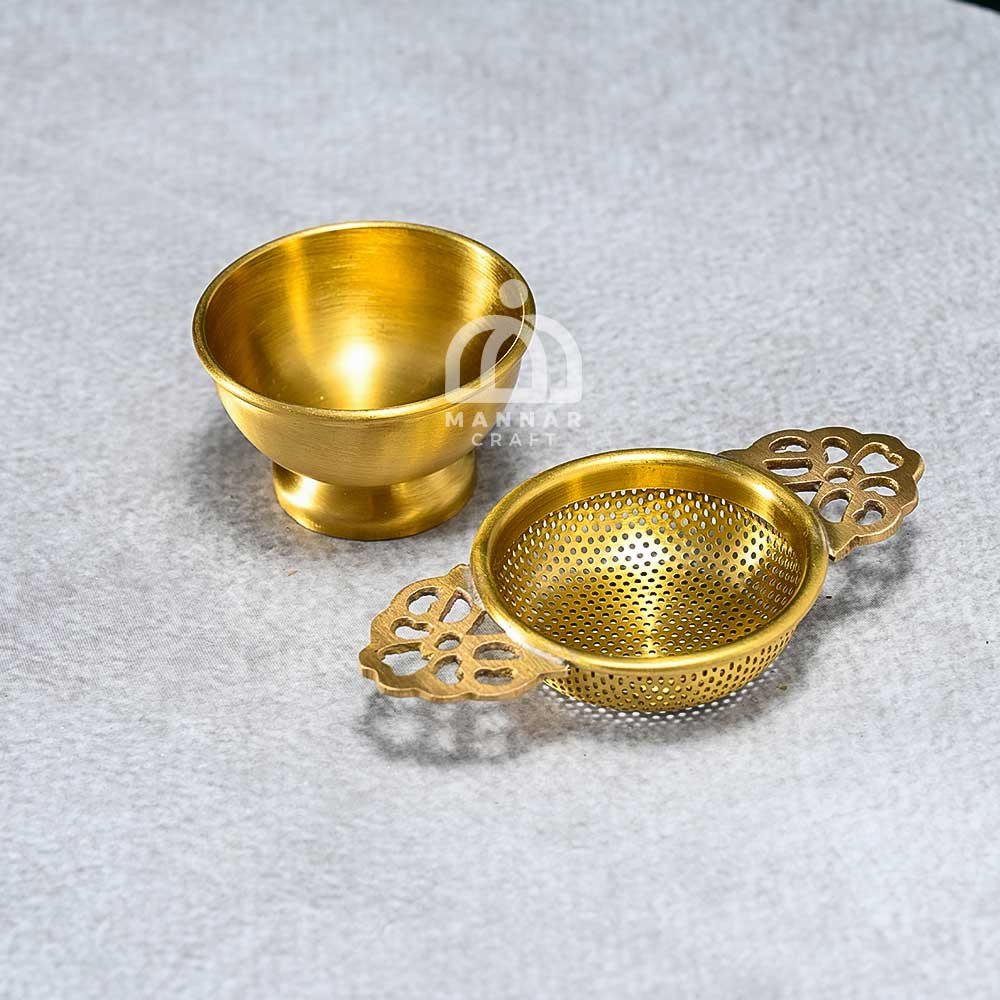 Elevate your tea and coffee-making experience with this high-quality Brass Strainer with Cup. Featuring a matte finish and durable, anti-rust construction, this chai chaalni is the perfect addition to your kitchen. Ideal for straining tea leaves or coffee grounds, it ensures a smooth and refined beverage every time. Its compact design allows for easy storage, making it an efficient tool for any kitchen. Whether you're brewing a perfect cup of chai or filtering your favorite coffee, this brass strainer is designed for everyday convenience and long-lasting performance.