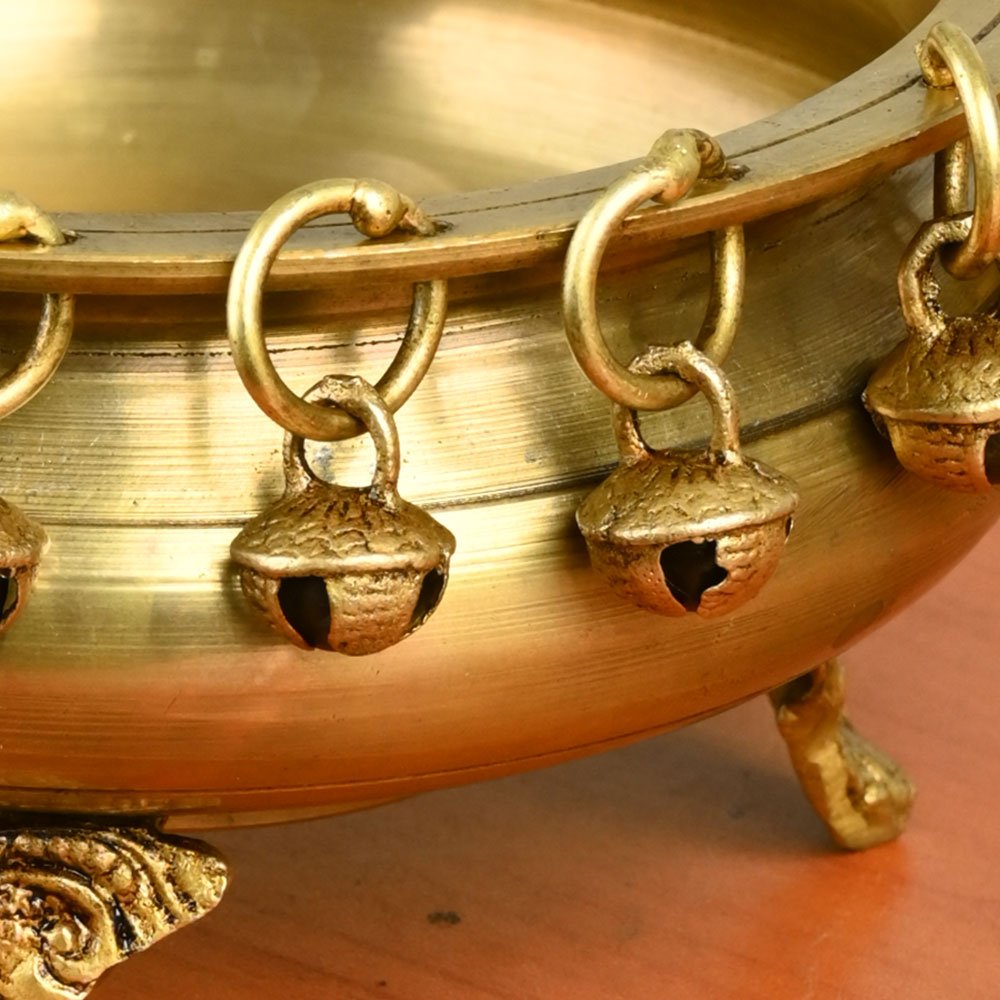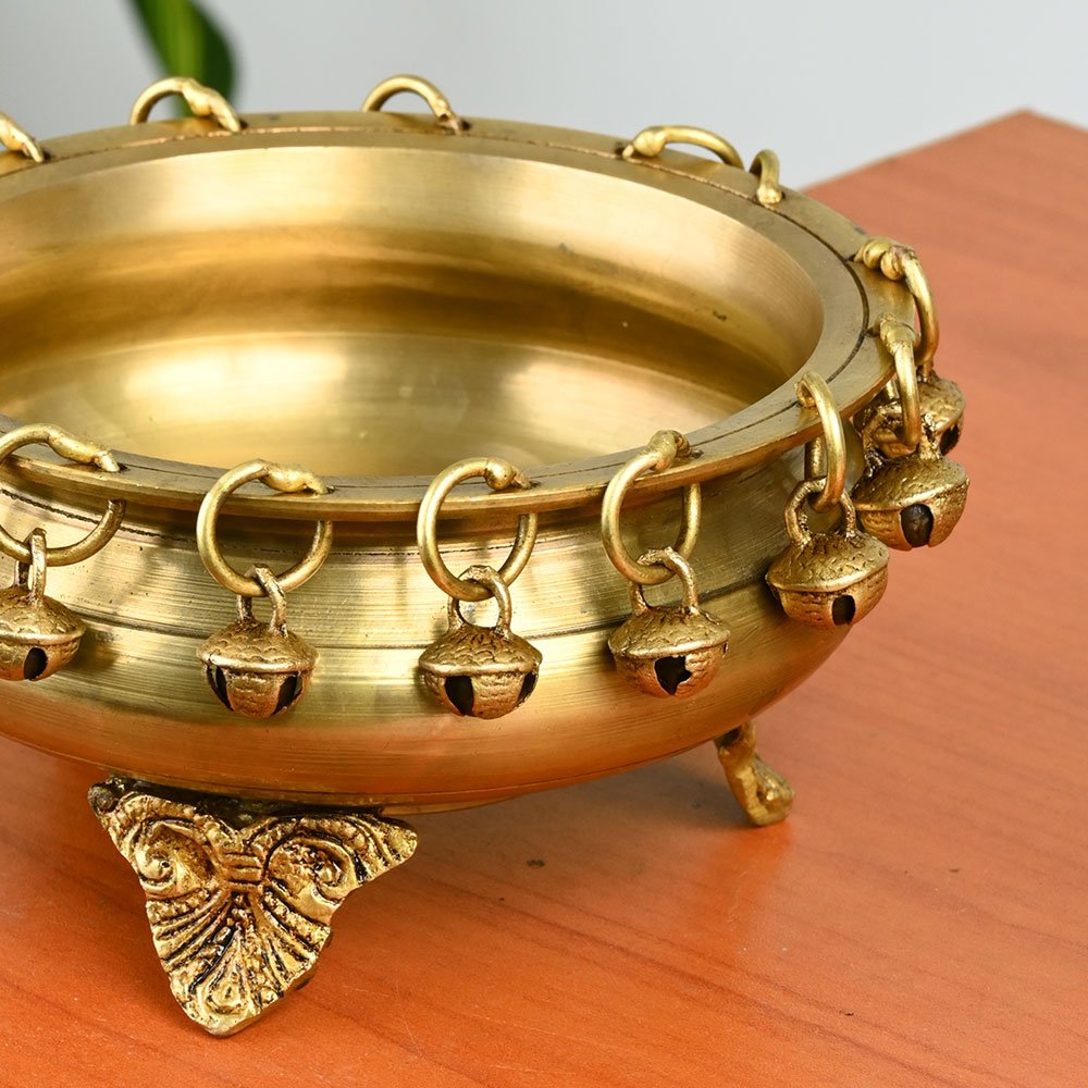 The delicate bells attached around the urli enhance its traditional appeal. They add a subtle charm and make the piece visually unique, perfect for ethnic and festive decoration.