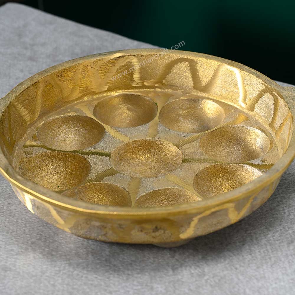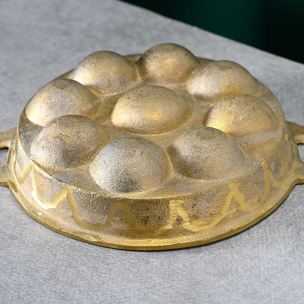 Experience traditional South Indian cooking with this handcrafted bronze paniyaram pan from Mannar Craft. Made from high-quality bronze, it ensures even heat distribution and long-lasting durability. Perfect for making paniyaram, unniyappam etc.