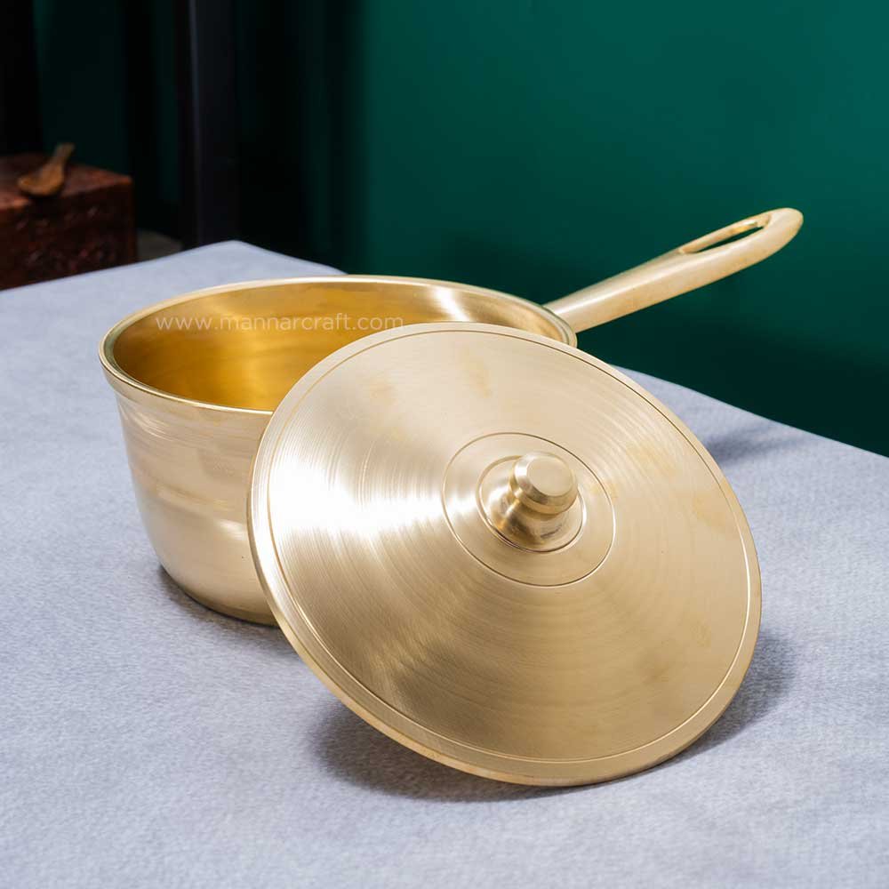 Elevate your kitchen experience with this versatile and beautiful bronze saucepan. Ideal for those seeking a healthy and traditional cooking method.