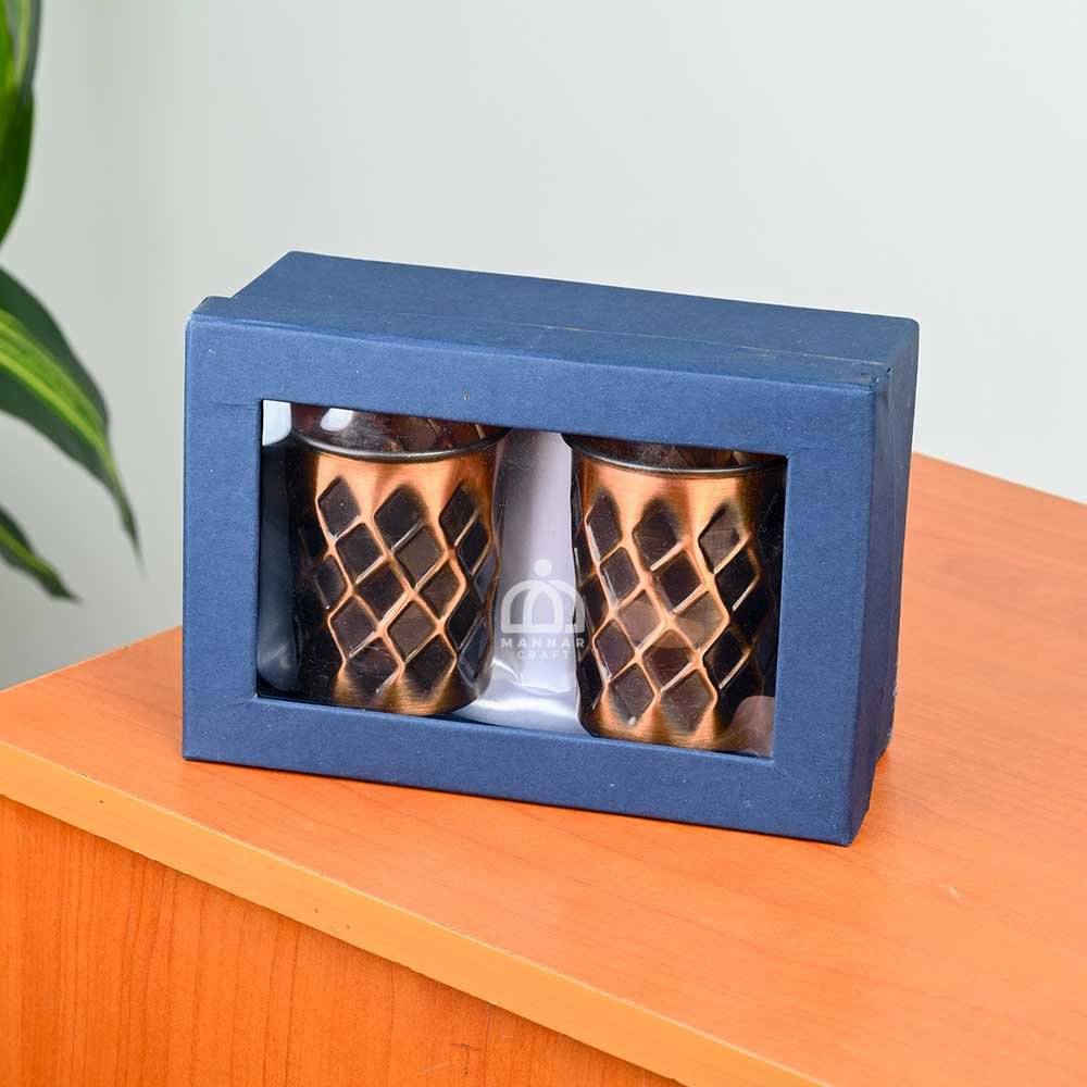 Bring home the beauty of heritage craftsmanship with this Copper Antique Design Glass Set of 2. Designed with intricate antique detailing and a rich copper finish, these glasses instantly add warmth and sophistication to your dining experience.