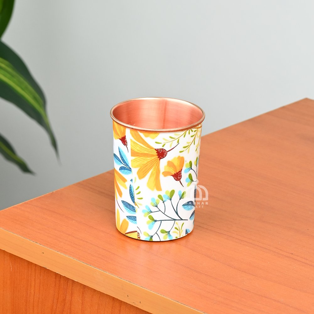 Bring home the perfect blend of health and heritage with our Copper Glass Set of 2 with Yellow Design. Inspired by Ayurvedic traditions, drinking water from copper vessels has been valued for centuries for its natural wellness benefits. Now, you can enjoy those benefits in a beautifully designed, contemporary style.