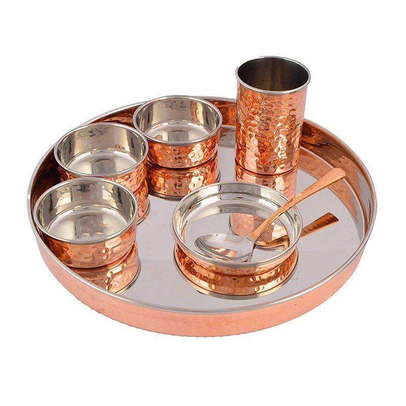 Indian Dinnerware Set Copper Stainless Steel Thali Plate Set