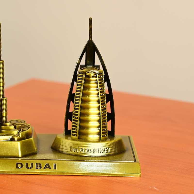 Iconic Dubai metal miniatures featuring the Burj Khalifa and Burj Al Arab. A premium architectural showpiece for home, office, or gifting that captures Dubai’s luxury skyline