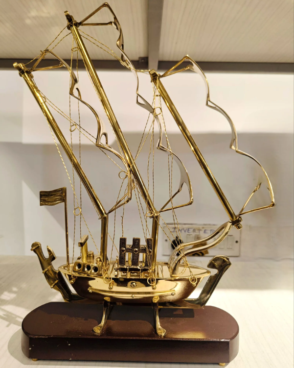 This elegant brass ship showpiece is a beautifully handcrafted nautical decor item that symbolizes adventure, success, and elegance. Made from high-quality brass with intricate detailing, it adds a classic maritime touch to living rooms, offices, cabins.