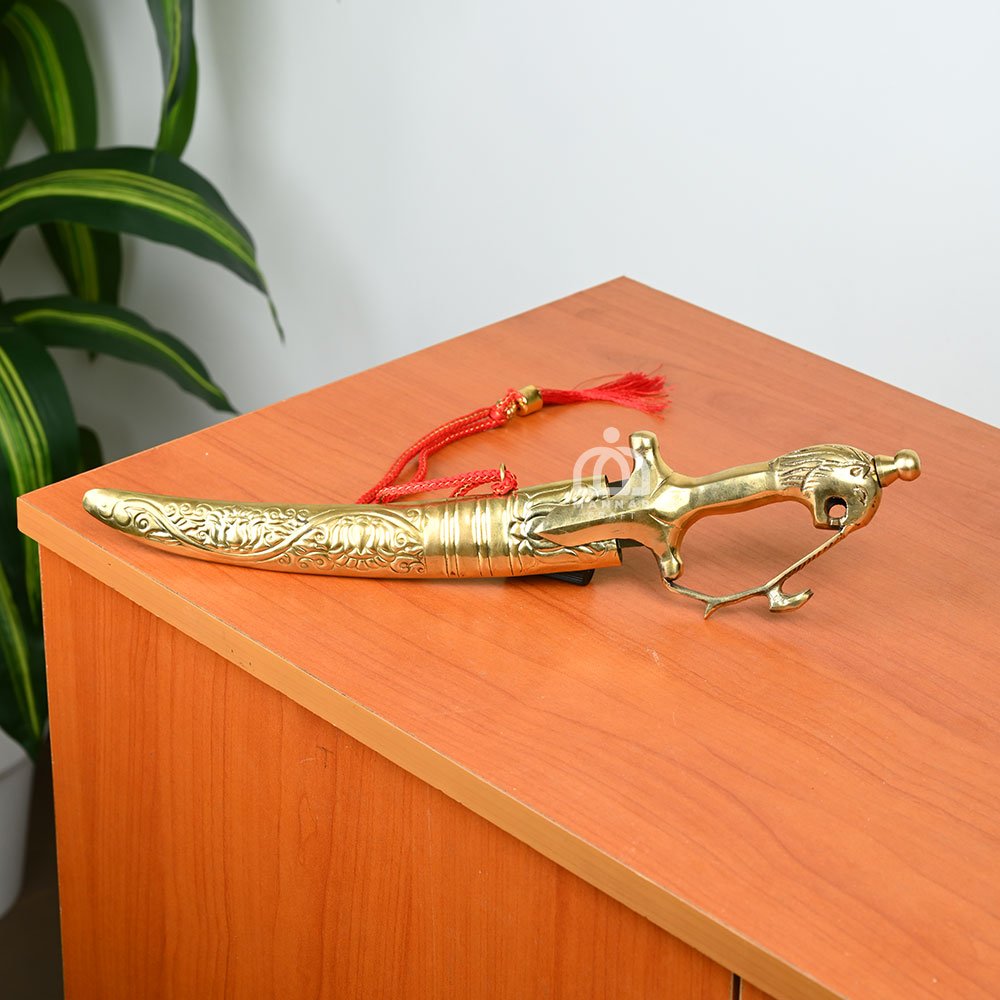 Celebrate tradition with this elegant brass sword a piece that speaks of legacy, strength, and artistry. Perfect for collectors, devotees, and lovers of authentic Indian decor.