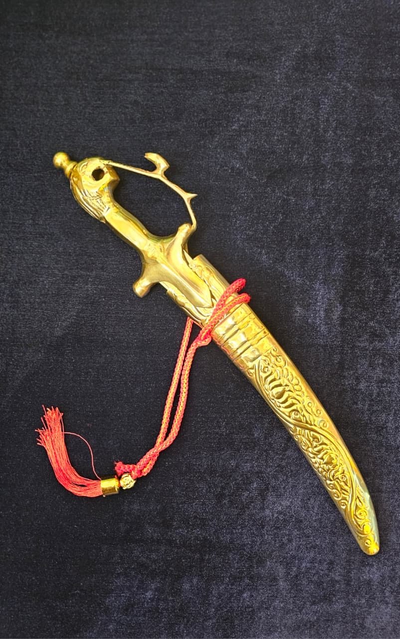 Designed for those who appreciate culture and craftsmanship, this decorative brass sword blends antique aesthetics with durable brass construction. Whether placed in a pooja room, displayed as a heritage artifact, or gifted on special occasions, it reflects timeless elegance.