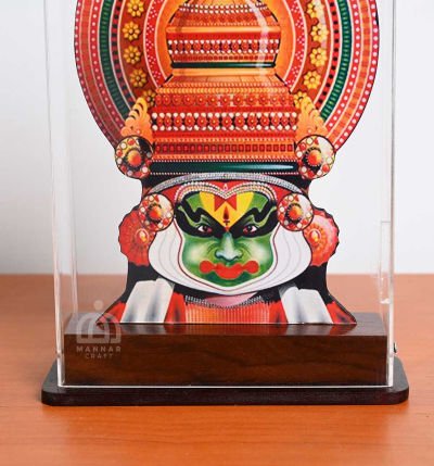 Bring home a piece of Kerala’s timeless performing arts with this Elegant Traditional Printed Kathakali Face presented inside a glass display case. Measuring 24 cm high and 18 cm wide, this stunning showpiece highlights the grandeur of Kathakali, one of India’s most iconic classical dance forms, known for its expressive makeup and dramatic storytelling.Handcrafted using premium wood and glass, this printed Kathakali art is designed to be both vibrant and durable. The clear case protects the artwork while offering an elegant presentation, making it a striking addition to any living room, office, lobby, or shelf.Whether you are looking for a Kerala-themed memento, a gift for cultural occasions, or an ethnic décor item, this piece from Mannar Craft brings beauty, meaning, and tradition into your space.