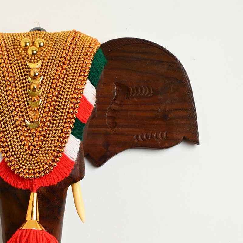 Whether you're looking to add a touch of exotic charm to your living room, bedroom, or any other space in your home, this Elephant Head Wall Decor is sure to impress. With its bold, life-like design and authentic Nettipattam, this Elephant Wall Head will be a conversation starter for all who see it.