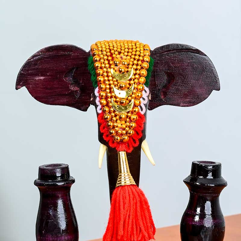 Bring a touch of traditional Indian artistry to your workspace with our Elephant Pooram Head Penstand. Inspired by the majestic elephants adorned during the grand Pooram festivals of Kerala, this pen holder is not only a practical desk organizer but also a stunning piece of decor. Handcrafted with intricate details, the Elephant Pooram Head Penstand adds a unique cultural charm to your home or office. Perfect as a gift or a personal indulgence, it effortlessly blends functionality with aesthetic appeal.