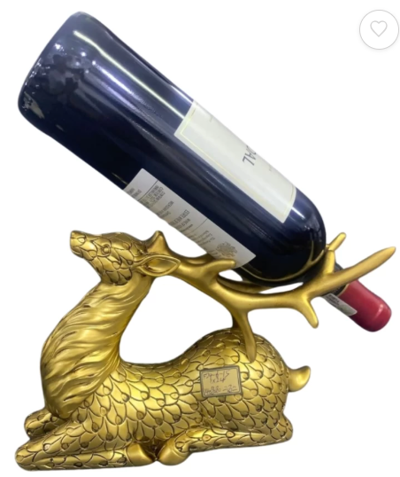Elegant gold deer wine bottle holder crafted from premium resin. A stylish décor accent for home bars, dining tables, or countertops—perfect for displaying wine, champagne, or beer bottles.
