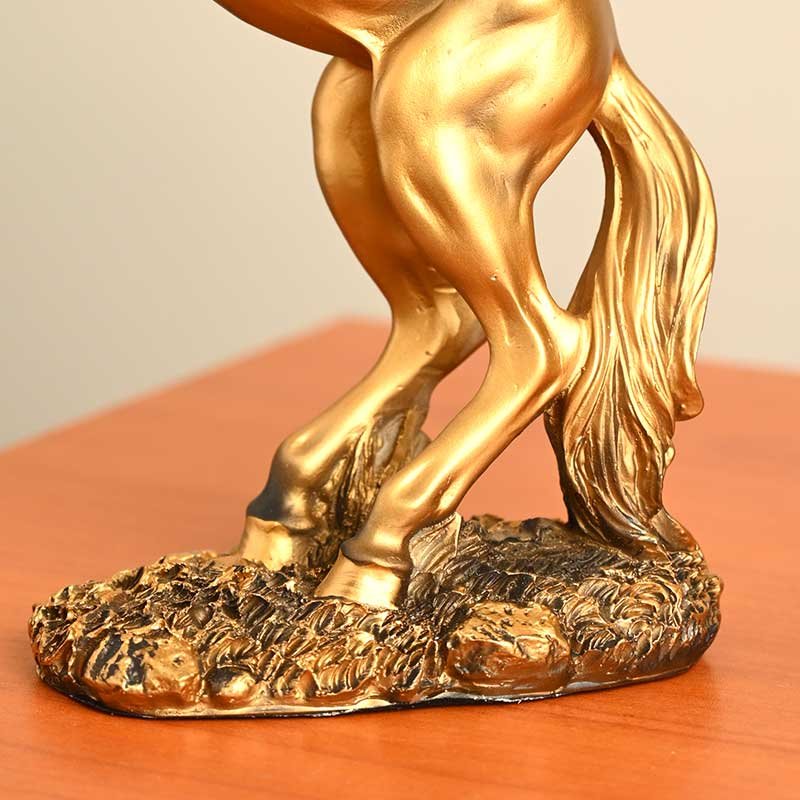 Crafted from high-quality premium resin, this decorative horse showpiece features intricate detailing that highlights every curve and muscle of the horse. The lustrous gold finish adds a refined, upscale appeal, allowing it to blend seamlessly with both modern and traditional interiors.