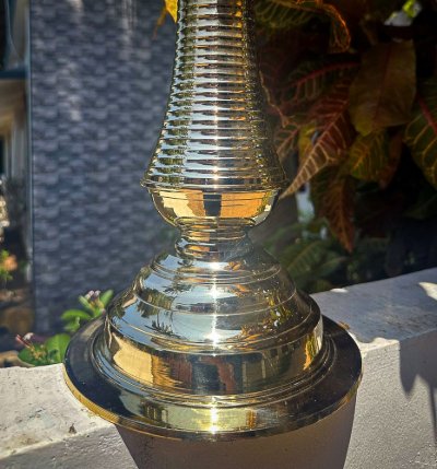 Paathi vilakku, lamps traditionally used in temples and other sacred spaces, are custom-made in proportion to the size of the idol or Pratistha. Mannar craft offers two types of Paathi vilakku: with and withoutwicks. Both types are available in various sizes to meet your needs. Made of premium brass with a beautiful finish, these Paathi lamps make thoughtful offerings or gifts for temples