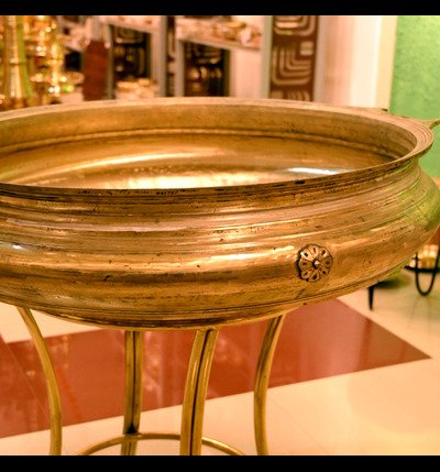 Magnificent handcrafted Giant Bronze Uruli (Varpu) – a traditional Kerala vessel used for cooking and decorative purposes. Made from premium bronze with a rich antique finish, ideal for authentic kitchen use, pooja, and heritage décor.
