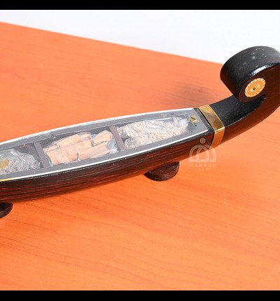 Bring home a slice of Kerala's rich boat racing heritage with the Handcrafted Wooden Churulan Vallam with Stand and Original Spices by Mannar Craft. This beautifully crafted wooden miniature is inspired by the traditional Churulan Vallam used in Kerala boat races and is meticulously made using high-quality wood to ensure lasting charm.
