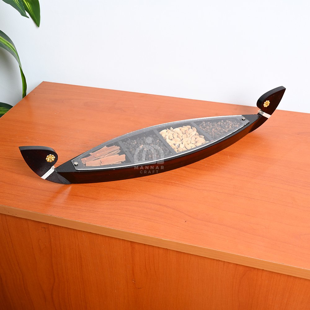 This wooden spice boat is also a thoughtful gift choice for weddings, Diwali, Onam, housewarming ceremonies, or corporate occasions, especially for those who appreciate traditional Indian crafts.