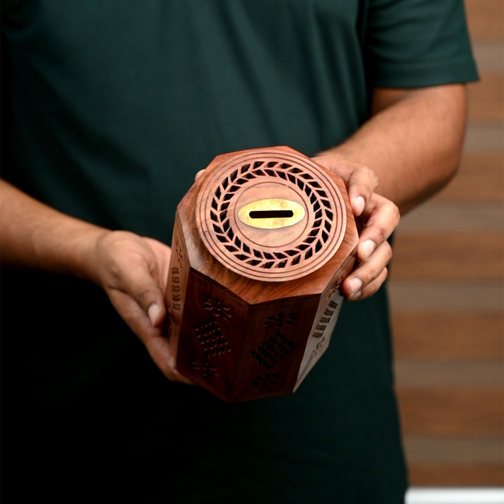 Whether you're buying it for your child’s first piggy bank, using it to stash extra coins, or gifting it during festive seasons or birthdays, this handcrafted wooden box delivers lasting value and beauty.