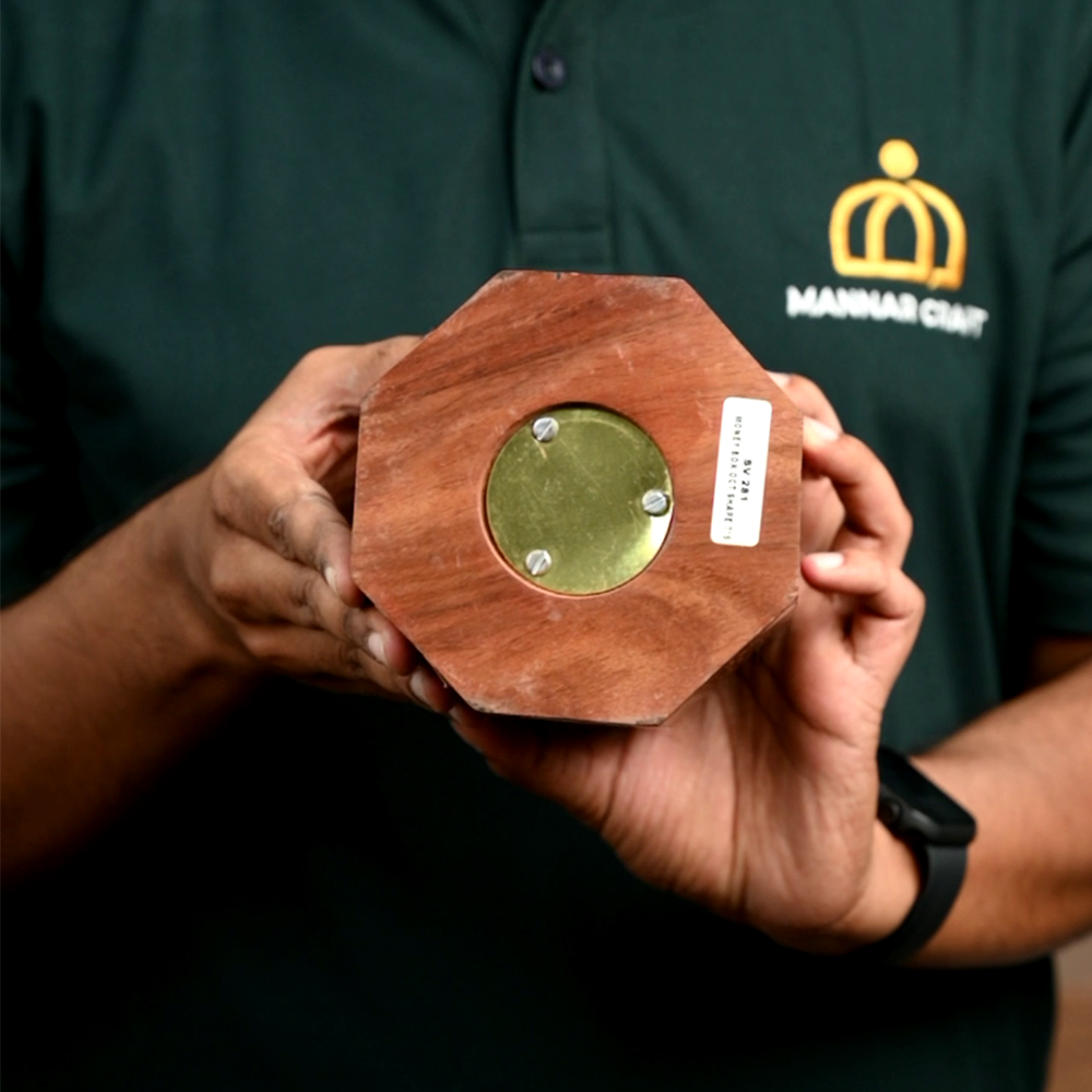 Bring timeless charm and practicality into your space with the Handcrafted Wooden Money Box by Mannar Craft. Expertly carved from durable, eco-conscious wood, this traditional-style piggy bank is both a functional savings box and a stunning home decor accent.