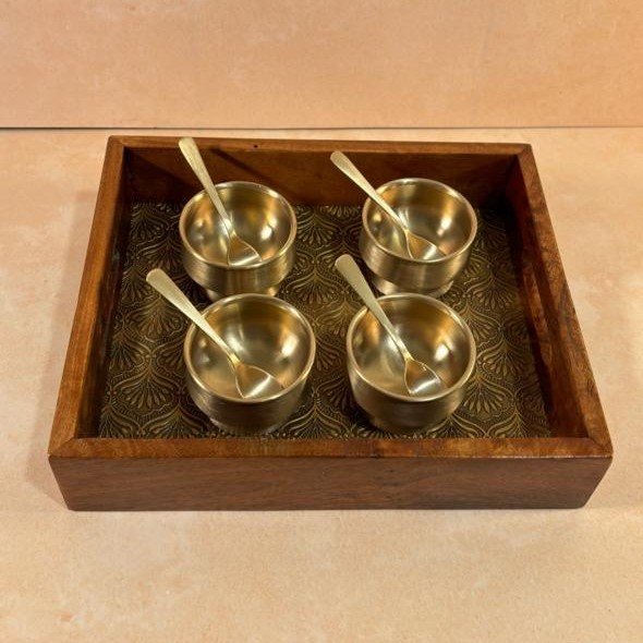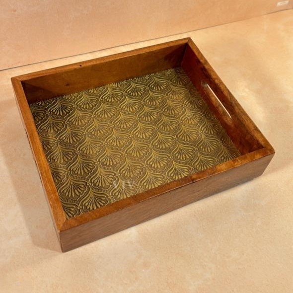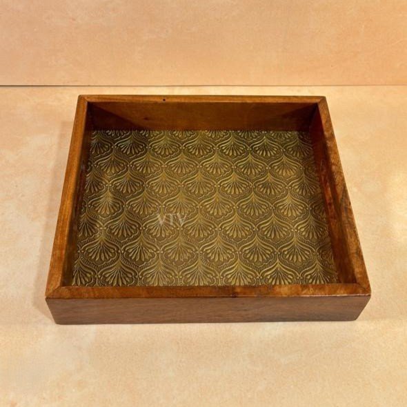 Handcrafted Wooden Serving Tray with Embossed Brass Sheet – Elegant Table & Kitchen Decor | Mannar Craft