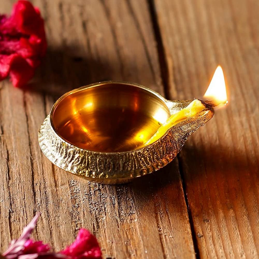Illuminate your pooja space with this set of 10 handcrafted heavy-base Brass Kuber Diyas, designed for continuous burning to create a sacred ambiance during aarti, festivals, and daily worship rituals