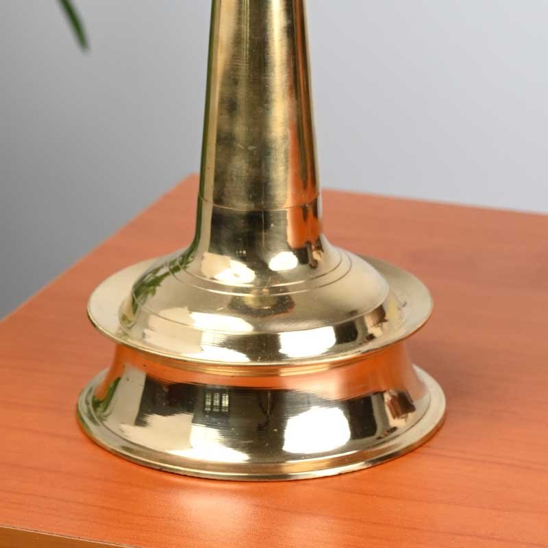 Illuminate your sacred space with this Handmade Brass Vilakku, featuring a unique Mottu design. The 11.5-inch heavy brass deepam is ideal for temple rituals, home pooja, and traditional décor.