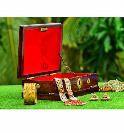Discover the timeless charm of Kerala craftsmanship with this Handmade Kerala Traditional Rectangular Jewel Box. Expertly crafted using high-quality wood, this exquisite jewelry box showcases intricate traditional designs, making it the perfect storage solution for your precious ornaments. Designed to reflect Kerala's rich heritage, this rectangular jewel box is not only functional but also a statement piece for your dressing table. Ideal for gifting on special occasions like weddings, anniversaries, and festivals, this jewel box brings a touch of tradition and elegance to your collection.