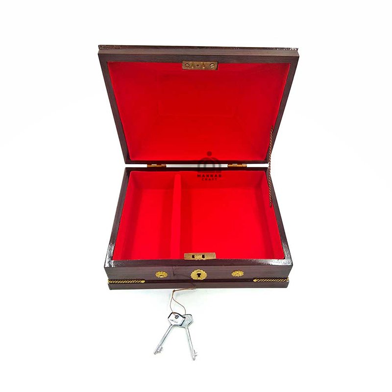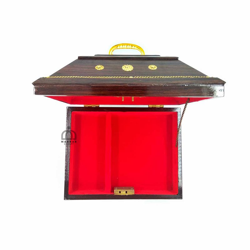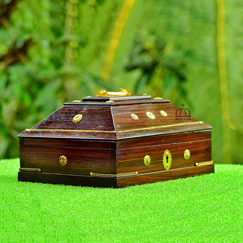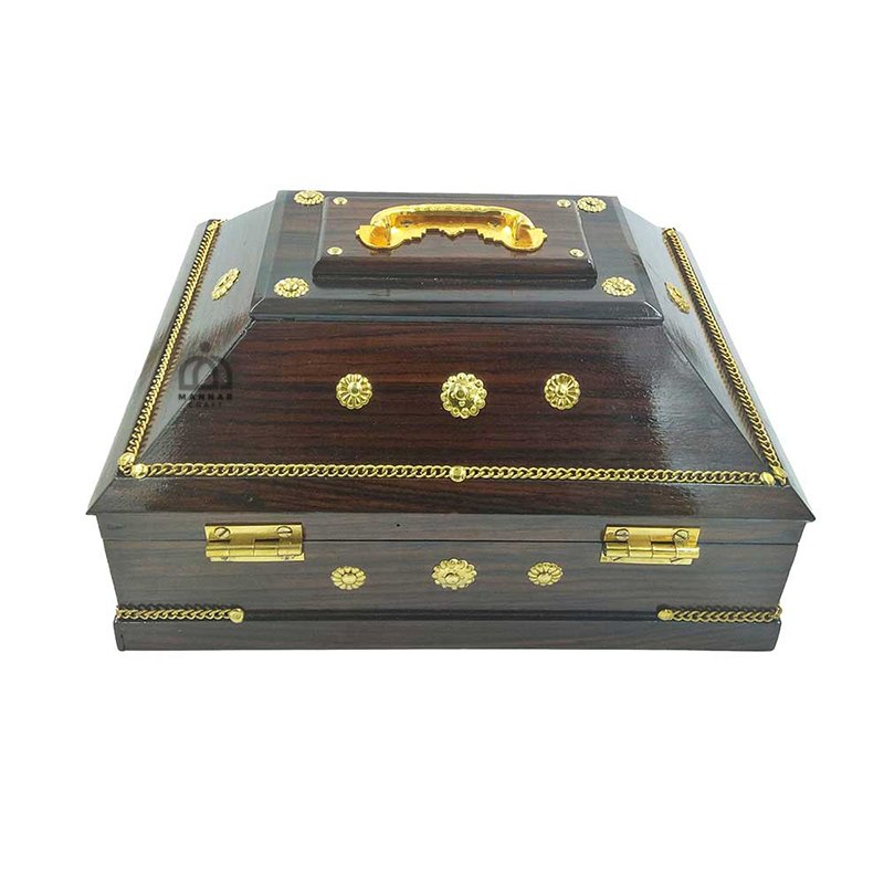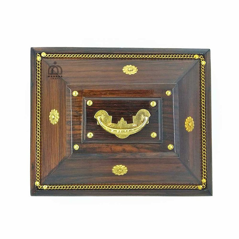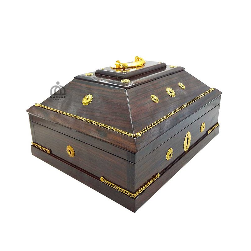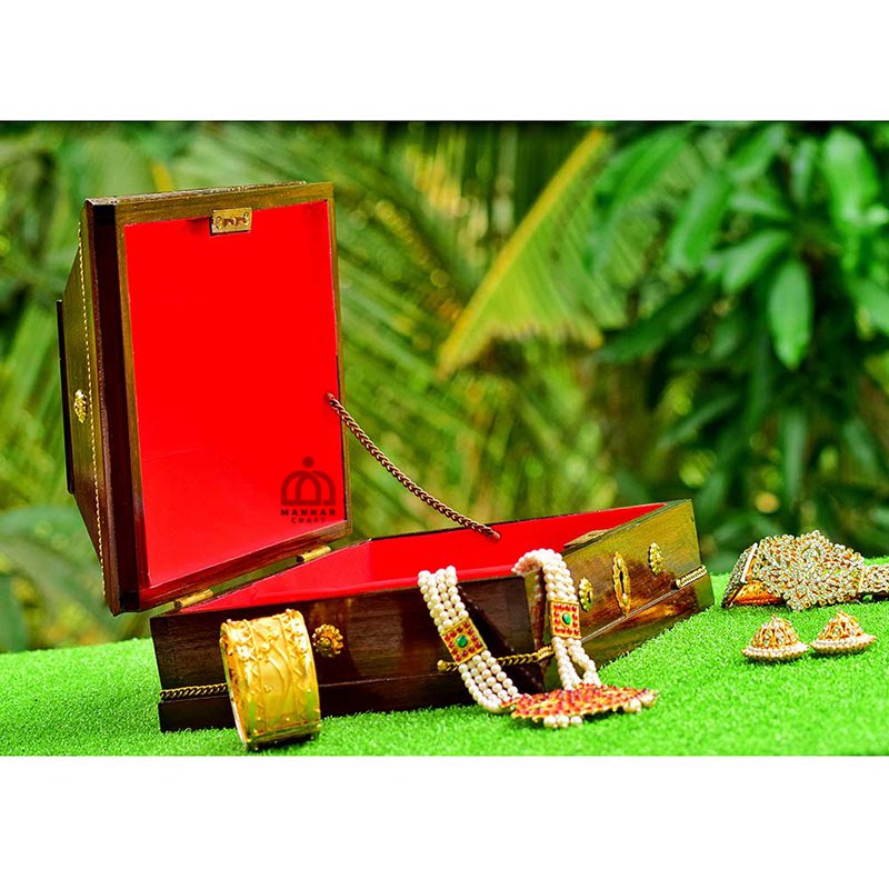 Discover the timeless charm of Kerala craftsmanship with this Handmade Kerala Traditional Rectangular Jewel Box. Expertly crafted using high-quality wood, this exquisite jewelry box showcases intricate traditional designs, making it the perfect storage solution for your precious ornaments. Designed to reflect Kerala's rich heritage, this rectangular jewel box is not only functional but also a statement piece for your dressing table. Ideal for gifting on special occasions like weddings, anniversaries, and festivals, this jewel box brings a touch of tradition and elegance to your collection.