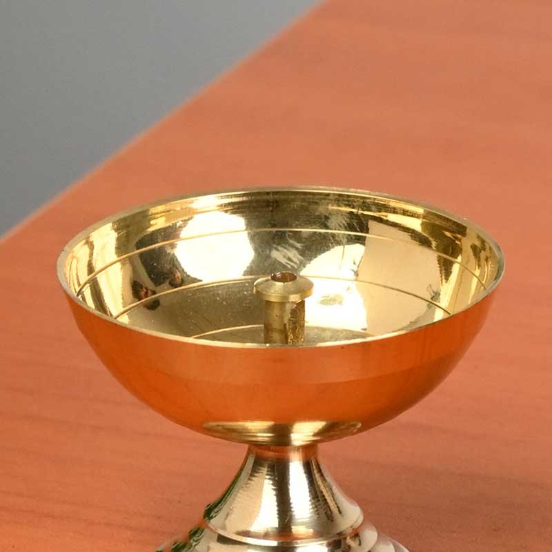 Brass diya are used as permanent fixtures in homes and temples. Brass oil lamps are handsome to look at and may be used as a decor item for the pooja room . Add more elegance to your Puja rituals with this elegant Metal Diya which bears an ample space to hold the oil and the 'batti'.Create a meditative and peaceful ambiance in your puja room with the Akhand Diya.