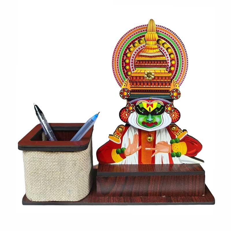 Kathakali is known for its bold expressions, rich colors, and dramatic storytelling. This pen holder captures that essence beautifully, making it a unique décor piece that stands out on any desk—whether at home or in a professional office setting.