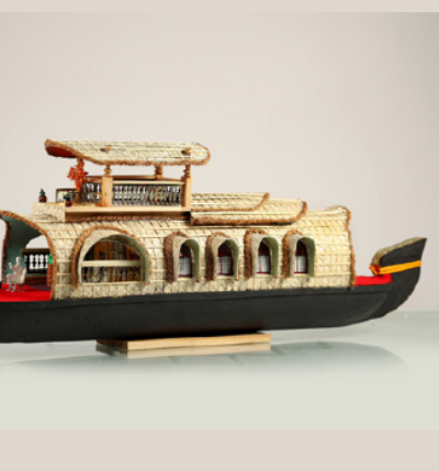 Beautiful handcrafted wooden Kerala houseboat miniature. A traditional décor piece that reflects Kerala’s backwater charm—perfect for home, office, or gifting.